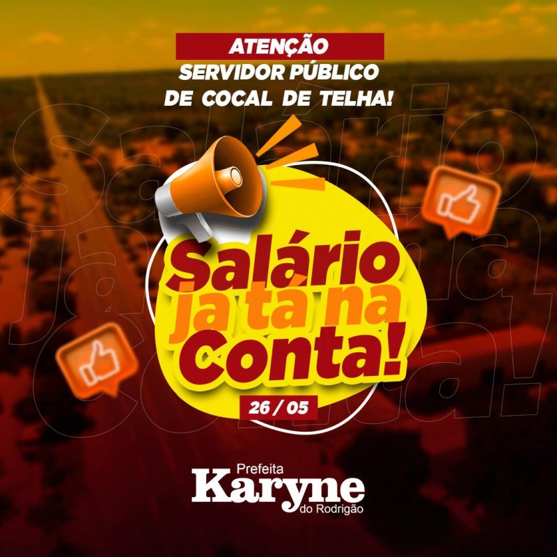 A prefeita do município de Cocal de Telha (PI), Karyne do Rodrigão, informou nesta quarta-feira (26) que o pagamento dos servidores públicos, (contratados, comissionados, efetivos ou servidores da saúde), foi efetuado.