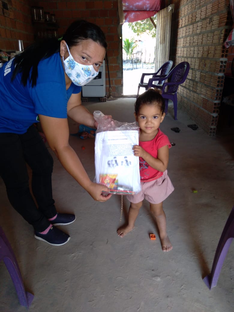 Durante o período de pandemia, os kits educativos estão sendo entregues mensalmente e são compostos com, massa de modelar, desenhos para colorir, tinta guache e informativo sobre a prevenção ao Coronavírus.