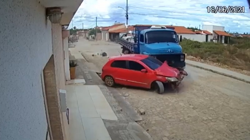 Depois disso, Lucas voltou para o caminhão, e jogou o caminhão alugado pela prefeitura contra o carro de Dibes que estava na rua. Um vídeo feito pela câmera de segurança de uma residência que fica próxima ao local do ocorrido, mostra o exato momento da batida.
