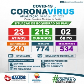 No município existe 23 casos ativos de COVID-19 e 215 pessoas já fora curadas da doença.