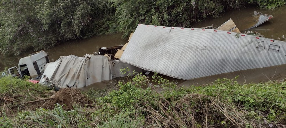 Caminhão cai dentro de riacho após colisão com carro na BR-343 em Campo Maior
