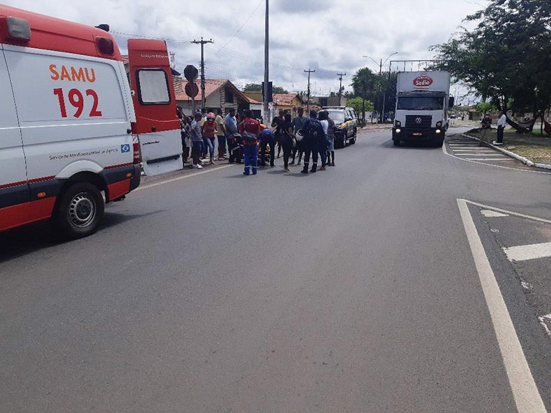 Ônibus colide em moto e mulher sofre lesões graves em Campo Maior