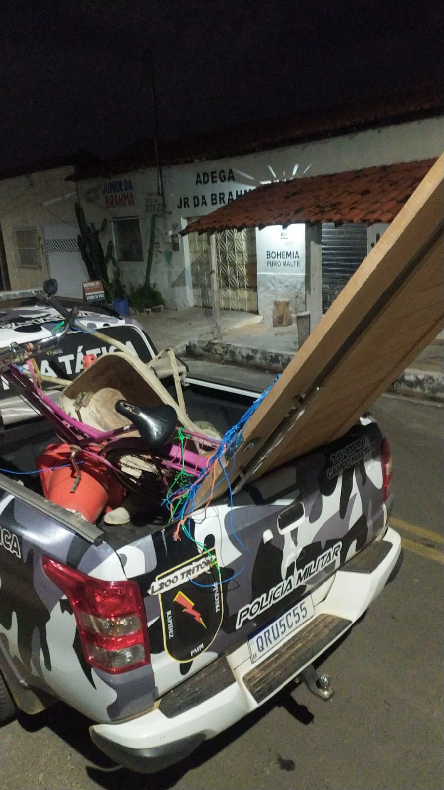 De acordo com as informações da Polícia Militar em Campo Maior, ao ser abordado o acusado carregava uma bicicleta com carro de mão, duas portas, cavador, alicate, dois prumos, colher de pedreiro e um par de botas, tudo furtado de uma obra em construção.