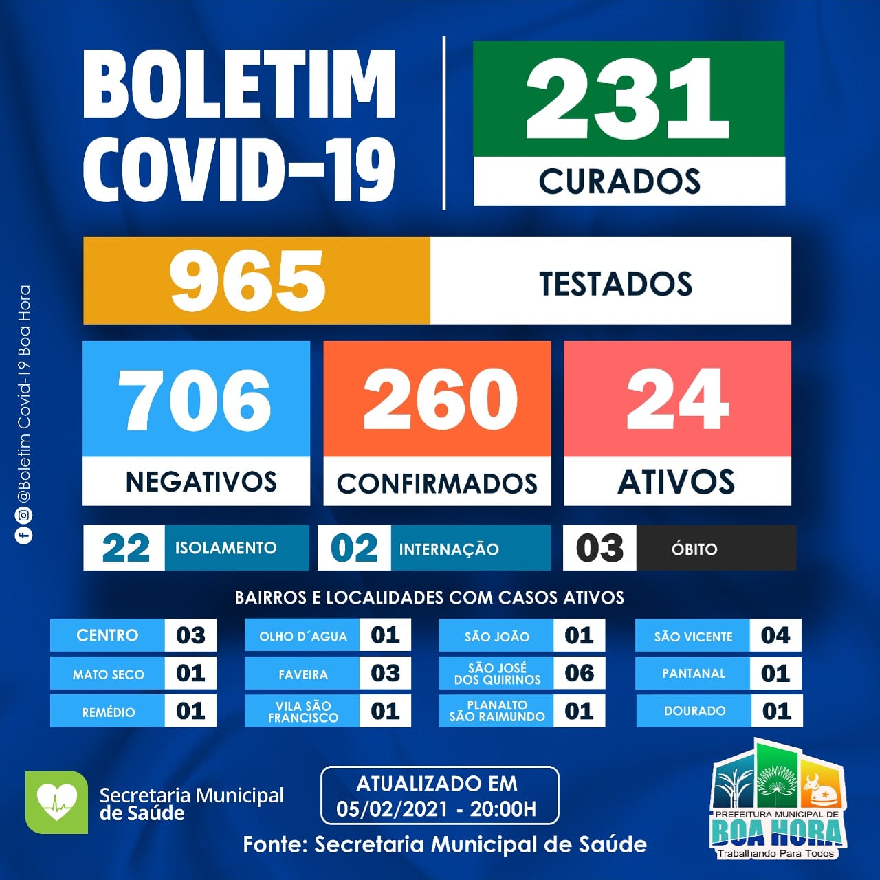 Em uma semana a cidade de Boa Hora registrou 3 mortes pela covid-19. A primeira morte acorreu no dia 2 de fevereiro, foi um homem de 70 anos de idade, morador da zona rural do município, ele estava internado em um hospitalde Parnaíba.