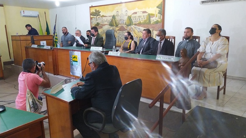 A solenidade de posse aconteceu de forma rápida e restrita, sem aglomerações. O momento contou com a presença de vereadores do município, representantes da Justiça Eleitoral e da OAB. A viúva de Alvimar Martins, Eleonora Martins, também participou da posse.