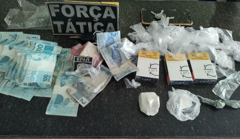 A primeira prisão ocorreu na noite de sábado (28), nas imediações da praça do Rosário, quando um homem de iniciais M.D.C.P foi flagrado com 5 porções de maconha, 3 porções de crack e dinheiro em espécie. O homem possui antecedentes por tráfico.