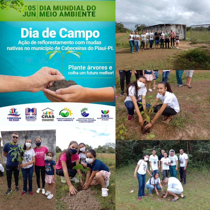 A Prefeitura Municipal de Cabeceiras do Piauí, por meio da Secretaria Municipal de Meio Ambiente realizou na manhã de domingo, 05 de junho, ações de reflorestamento no entorno do lixão e em áreas rurais do município. Tendo como público alvo os adolescentes do NUCA, a ação contou com a presença da Secretária de Meio Ambiente, Maria Aline, da Secretária de Assistência Social, Grazielle Almeida e do professor Evandro Alves.