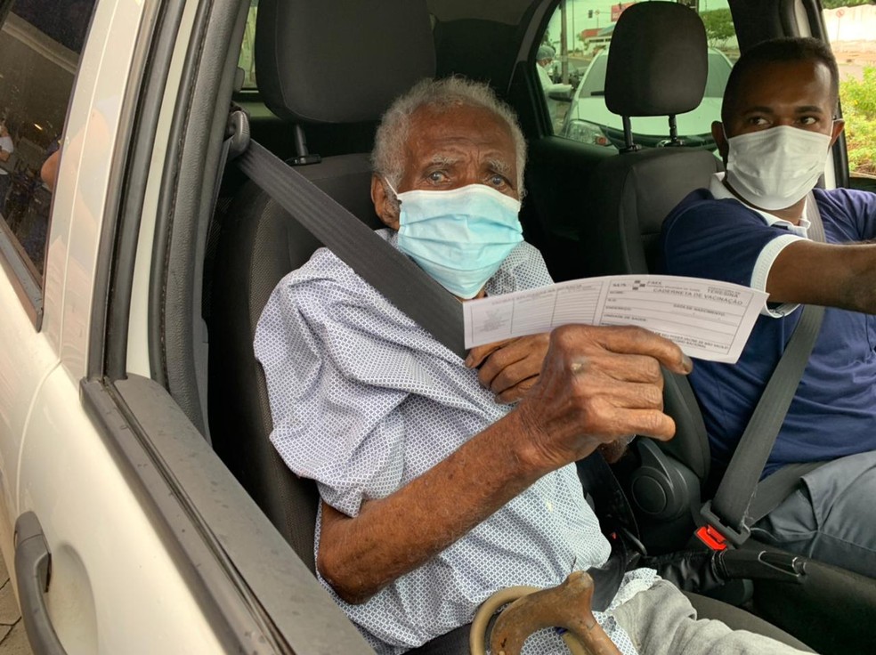 Firmino recebeu a primeira dose do imunizante no ponto de drive-thru, na Zona Sul de Teresina, acompanhado de sua cuidadora, Juliana Rosa dos Santos. Ela contou que o aposentado não sabe o que é o coronavírus, mas entende a importância de manter os cuidados para evitar o contágio.