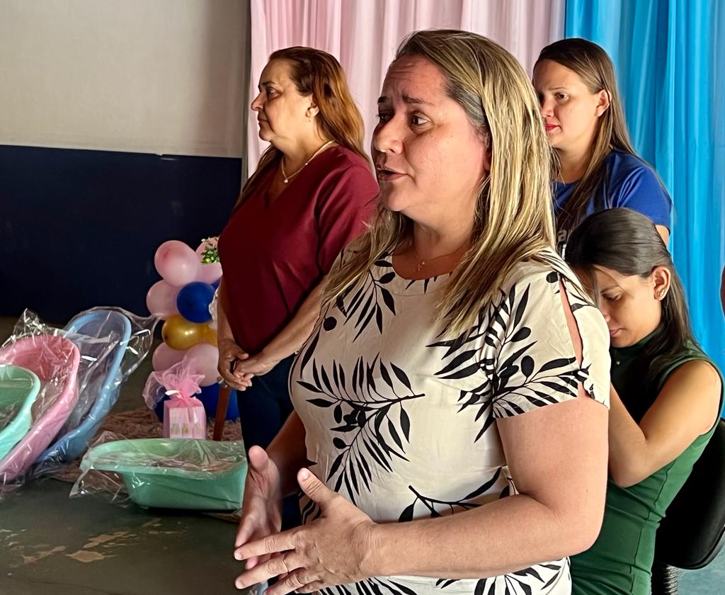 A primeira dama professora Gefesony Prudencio disse que o momento representa o cuidado da gestão municipal com as mulheres durante o período da gestação. Estiveram presentes ainda, a Assistente Social Gislene Moraes e as visitadoras do programa Criança Feliz.