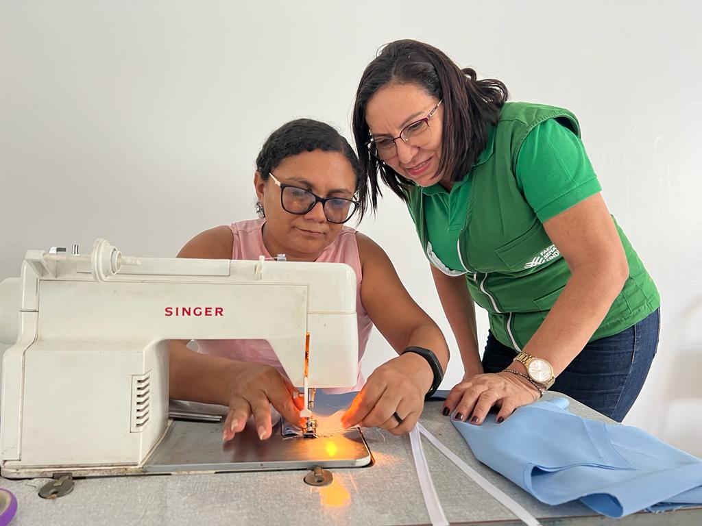 A senhora Josefa é moradora da comunidade Pau Pombos, ela elogiou a oportunidade. “Maravilhoso. Eu só tenho a agradecer. Já aprendi a fazer uma blusa, um short social e um lindo modelito” comemora a aluna do curso.
