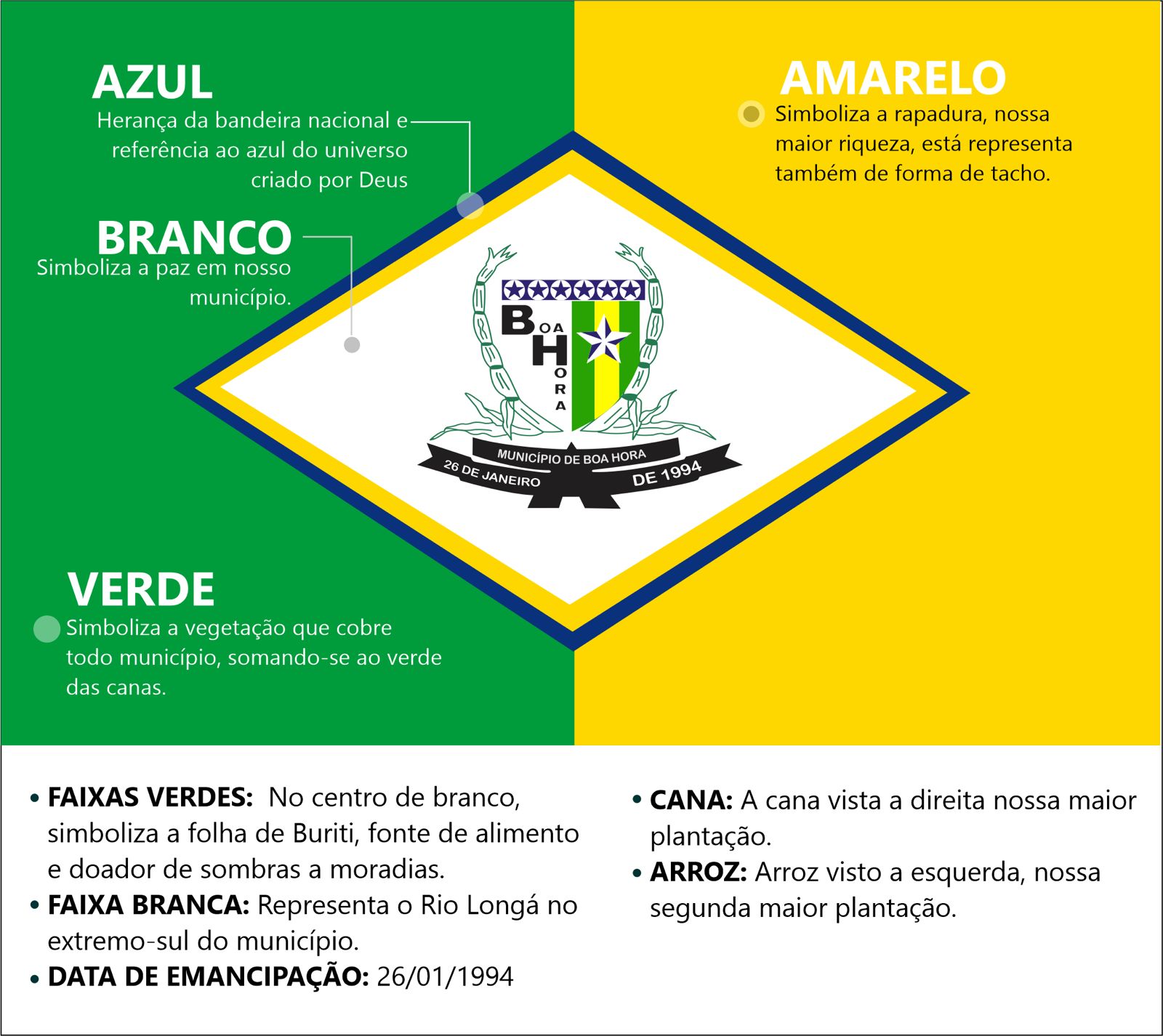 A bandeira e o brasão são símbolos que retratam a história e as características de cada município. Em Boa Hora somente o brasão criado em 1994 levava características do município.
