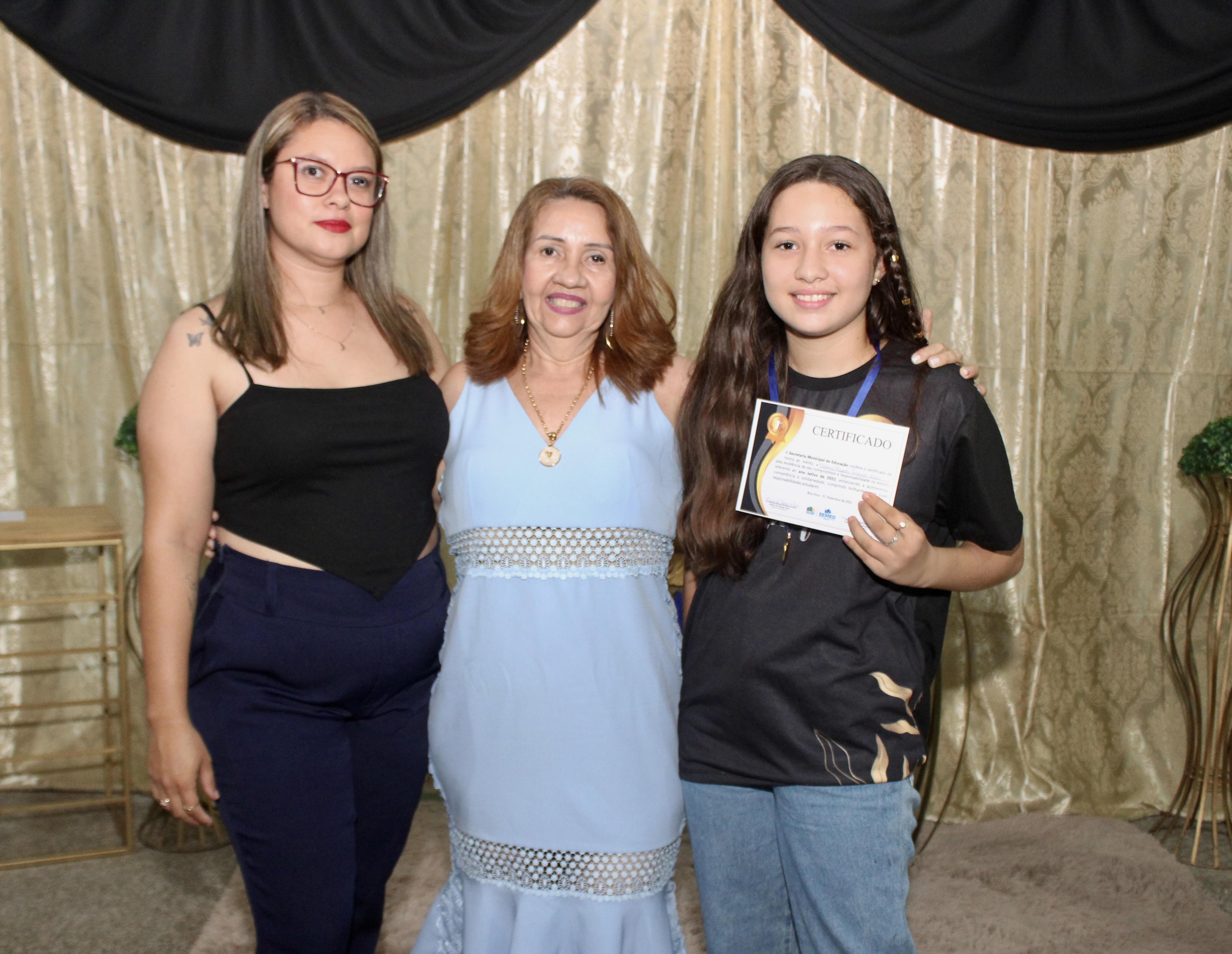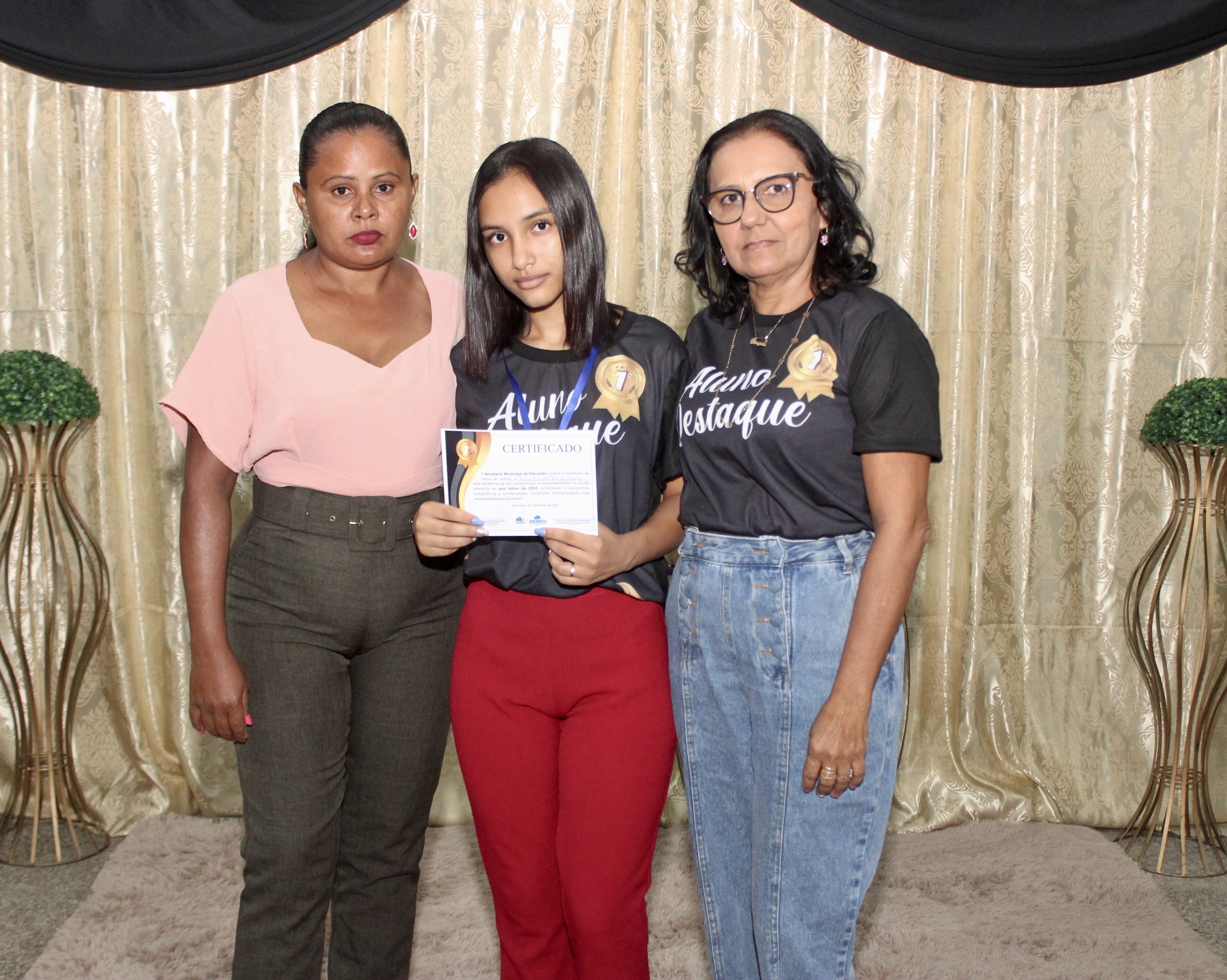 A secretária de Educação Maria Sousa destacou o avanço e os desafios na rede municipal de educação enfatizando o trabalho coletivo entre estudantes, diretores, coordenadores, professores e servidores administrativos. “Esse é um momento de reconhecer o esforço e reafirmar o senso de pertencimento de alunos e professores da rede municipal. Nossa gratidão a todos!” disse a Secretária.