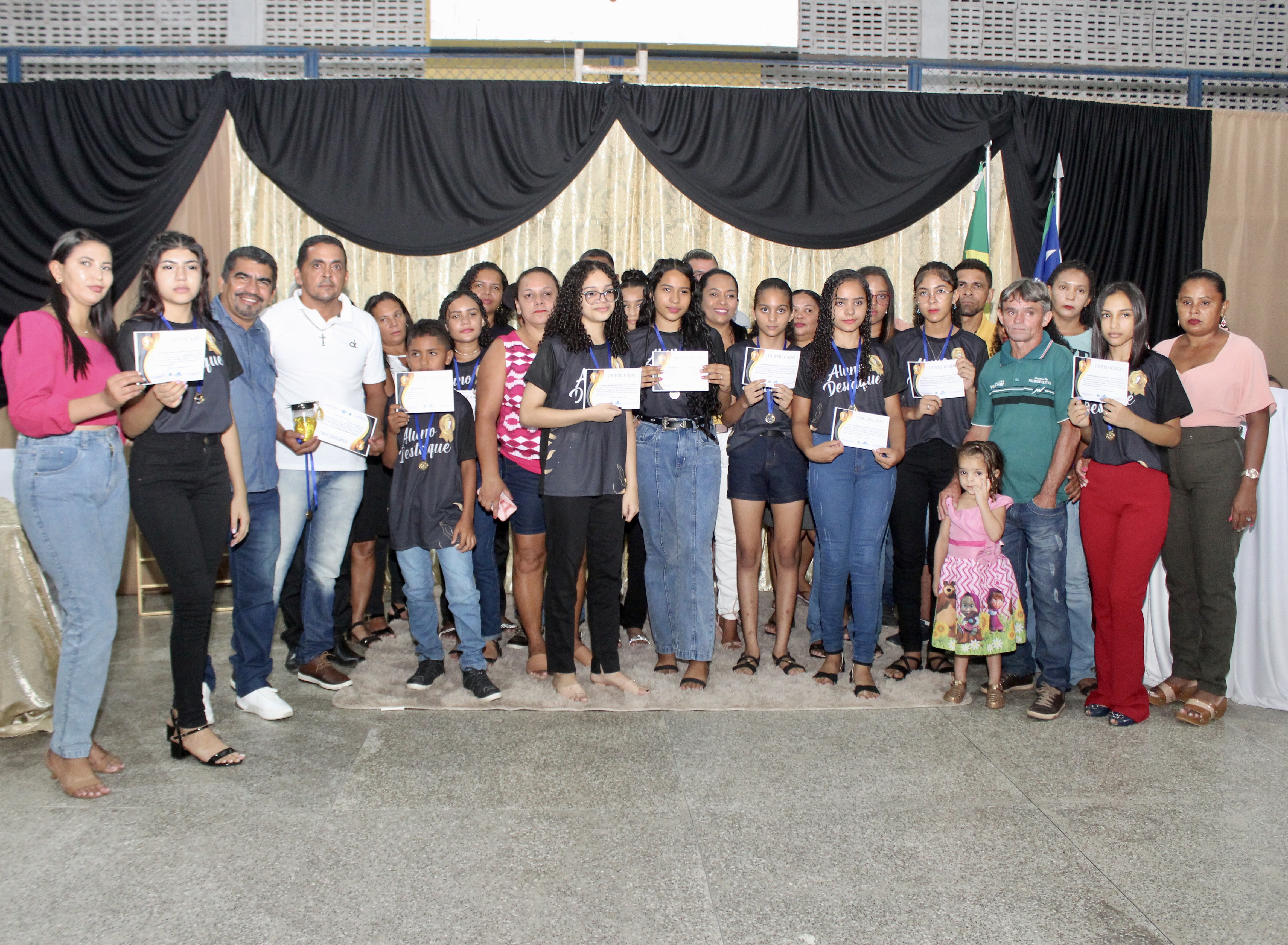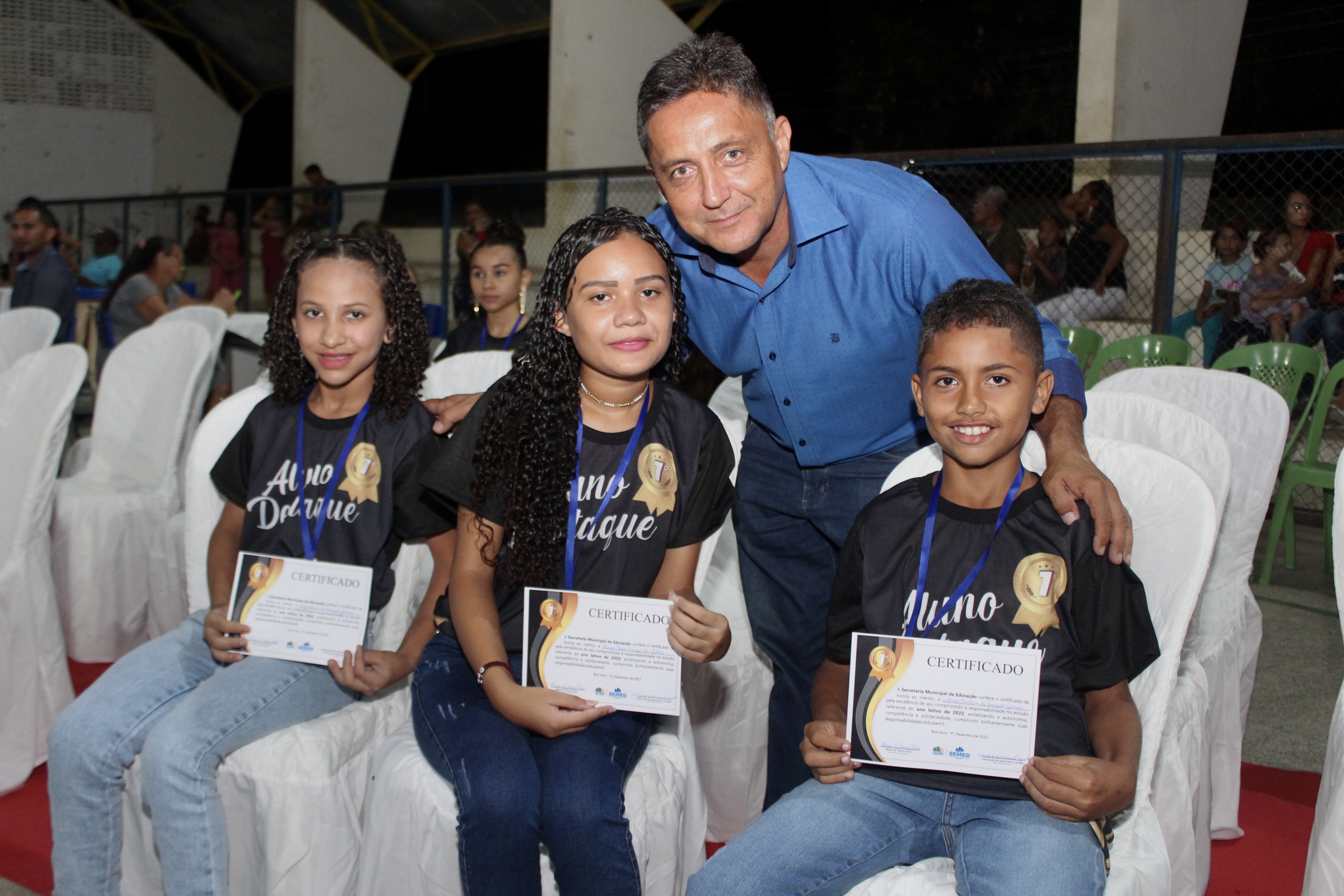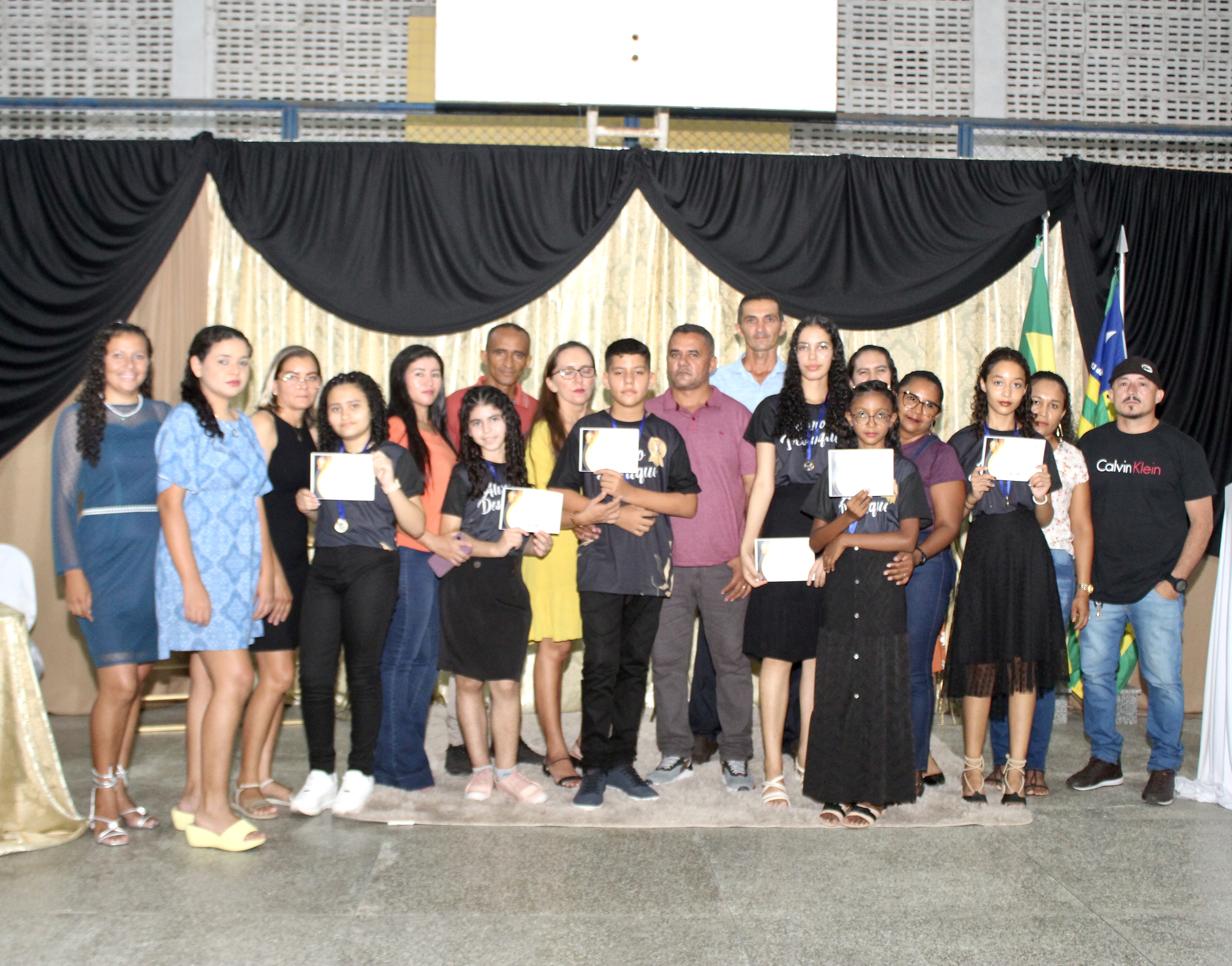 Durante a cerimônia foram premiados 42 alunos de 09 escolas da rede municipal que se destacaram em projetos e tiveram bom desempenho durante o ano letivo de 2022.
