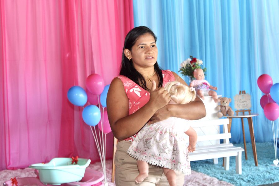 Durante a entrega, as gestantes também participaram de uma palestra com a enfermeira Evanda Moraes que abordou cuidados com o recém-nascido, como amamentação e higiene.