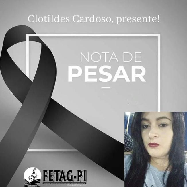 Com imenso pesar e consternação, a Diretoria da Federação dos Trabalhadores Rurais Agricultores e Agricultoras Familiares do Estado o Piauí (FETAG-PI), lamenta o falecimento de Clotildes Cardoso, ocorrido neste sábado (08), de forma tão precoce, aos 26 anos.