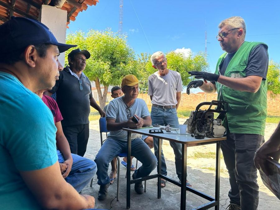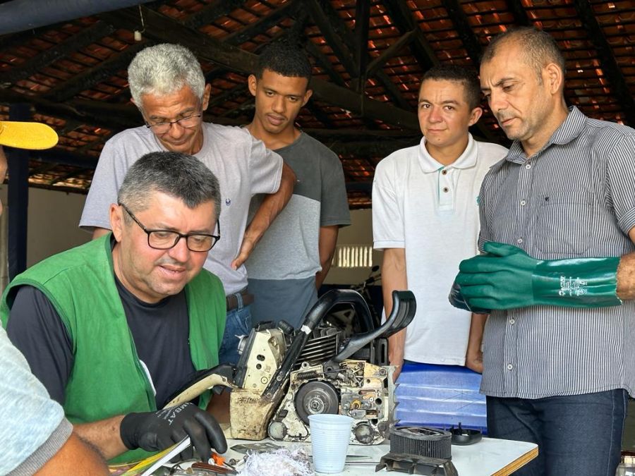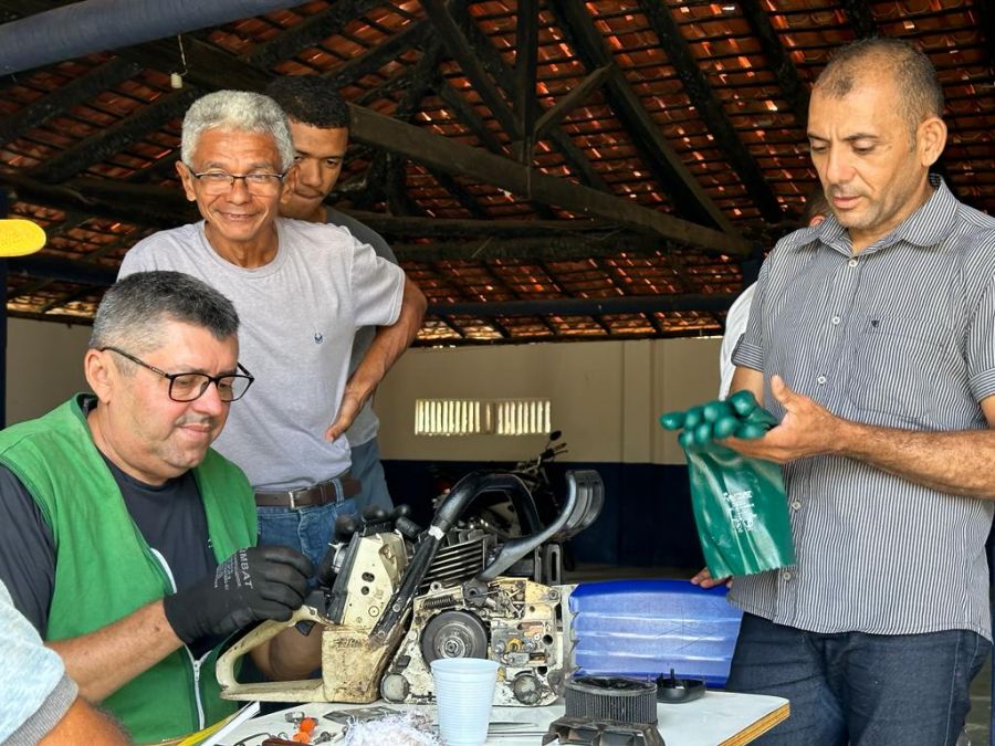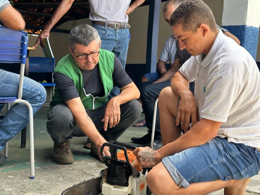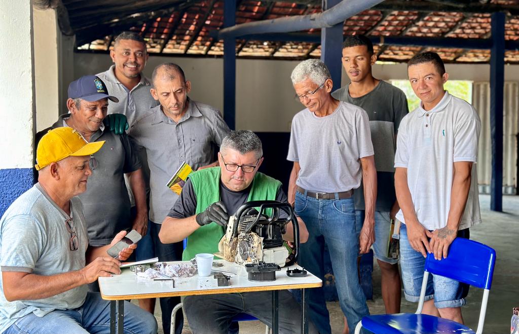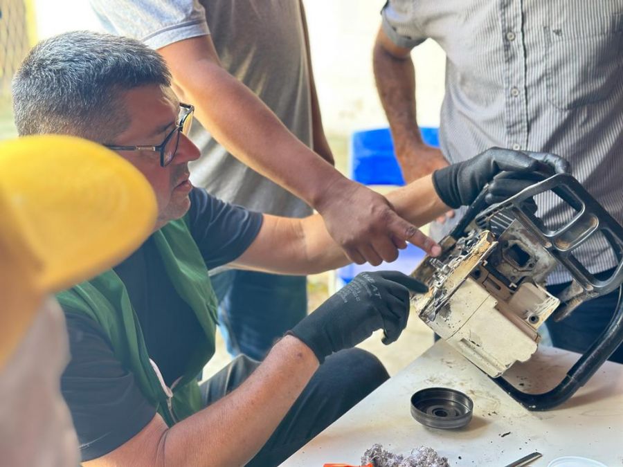 O curso qualificou mais de 20 pessoas com técnicas de operação e manutenção de motosserra e roçadeira.