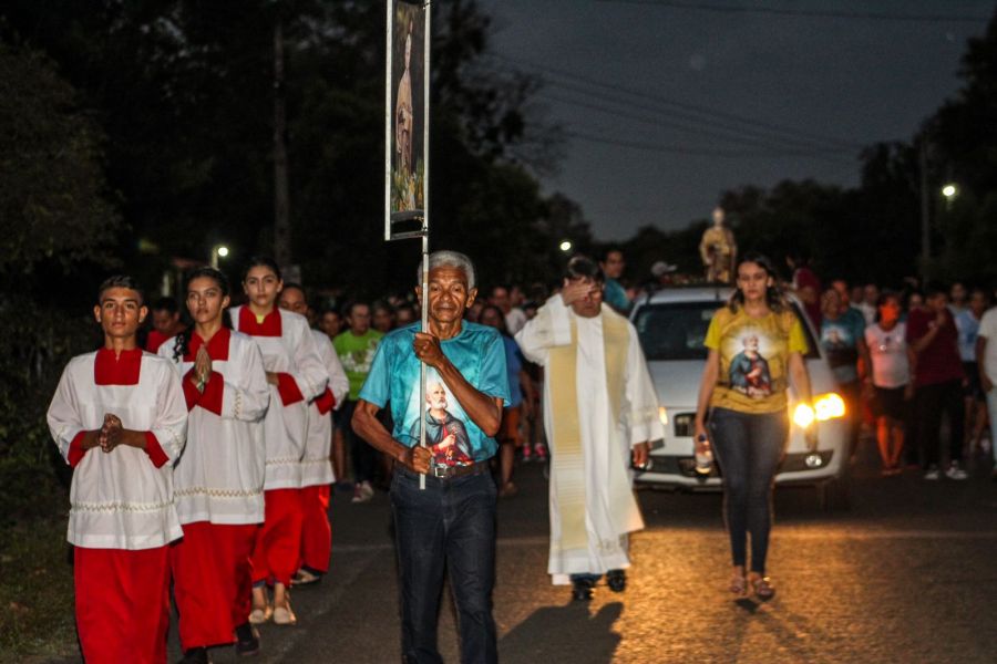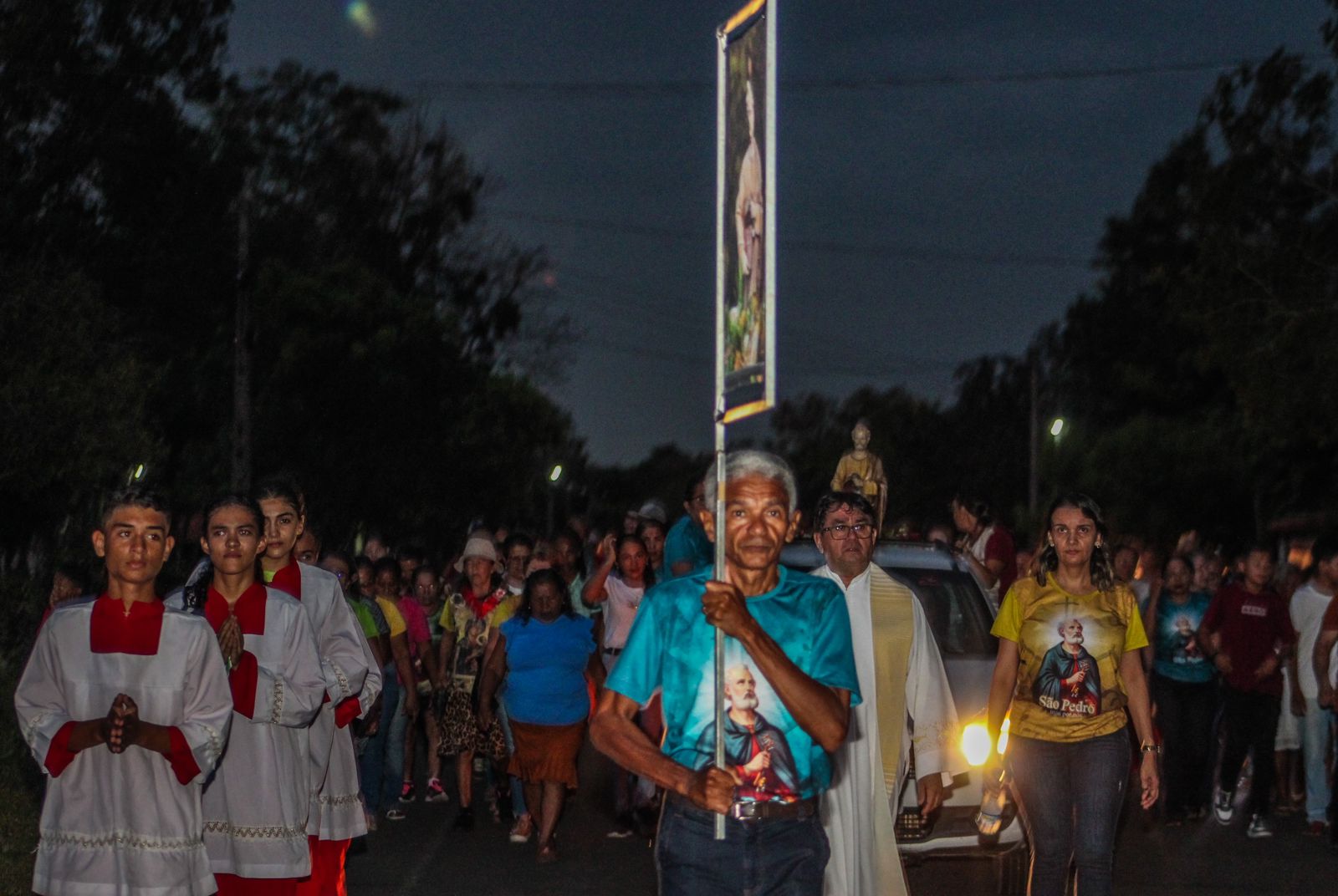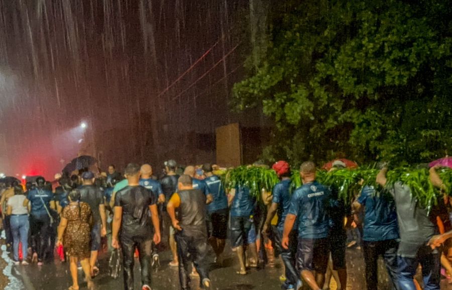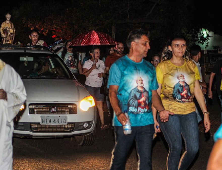 A procissão foi marcada por uma forte chuva que caiu no município, mas não afastou a multidão de fies que participaram da procissão da comunidade Pantanal até a Praça Matriz de São Pedro.