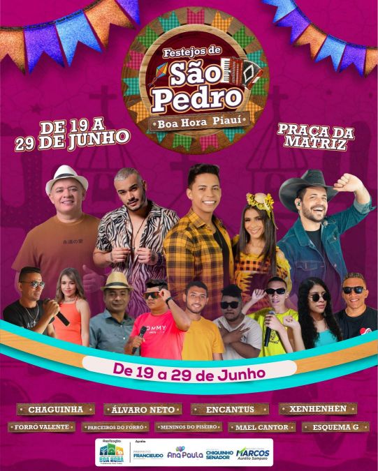 A Prefeitura de Boa Hora confirmou as atrações que se apresentarão durante os festejos de São Pedro no município.