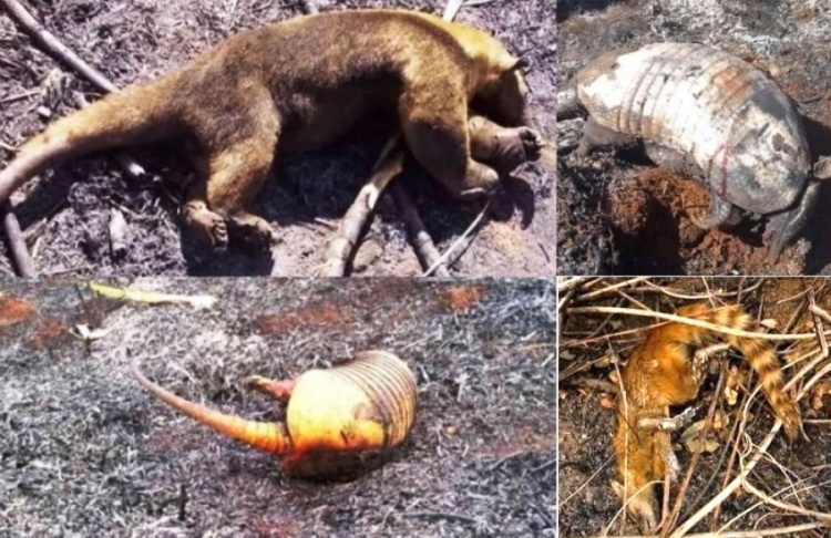 Tatus, tamanduás e raposas foram alguns dos animais mortos em um incêndio florestal que já dura cinco dias no município de São João da Fronteira, no Norte do Piauí, na divisa com o Ceará.