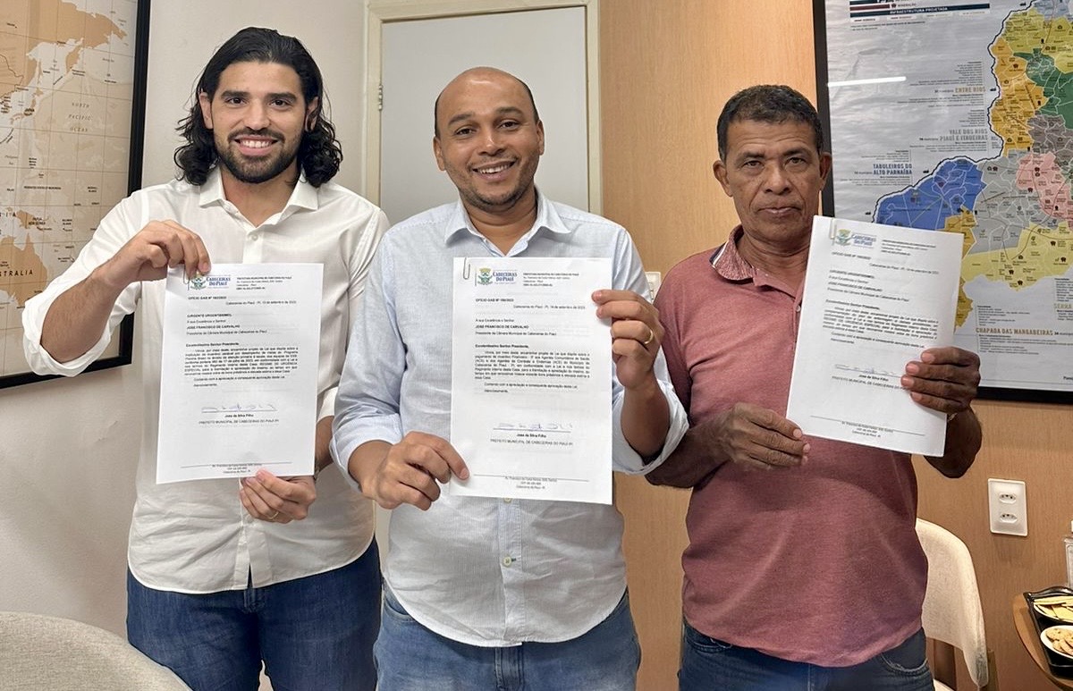 O prefeito assinou a lei ao lado do vereador presidente do legislativo municipal Zé Vicente e do assessor jurídico do município Dr. Eufrasio Neto.