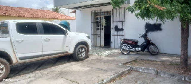 A fachada do prédio onde funciona a Delegacia da Policia Civil do Estado do Piauí, em Buriti dos Lopes, no Norte do Piauí, amanheceu nesta manhã do dia 17,11,2023, pichada com a sigla de uma facção criminosa. Uma equipe de agentes da Policia Civil está investigando o caso.