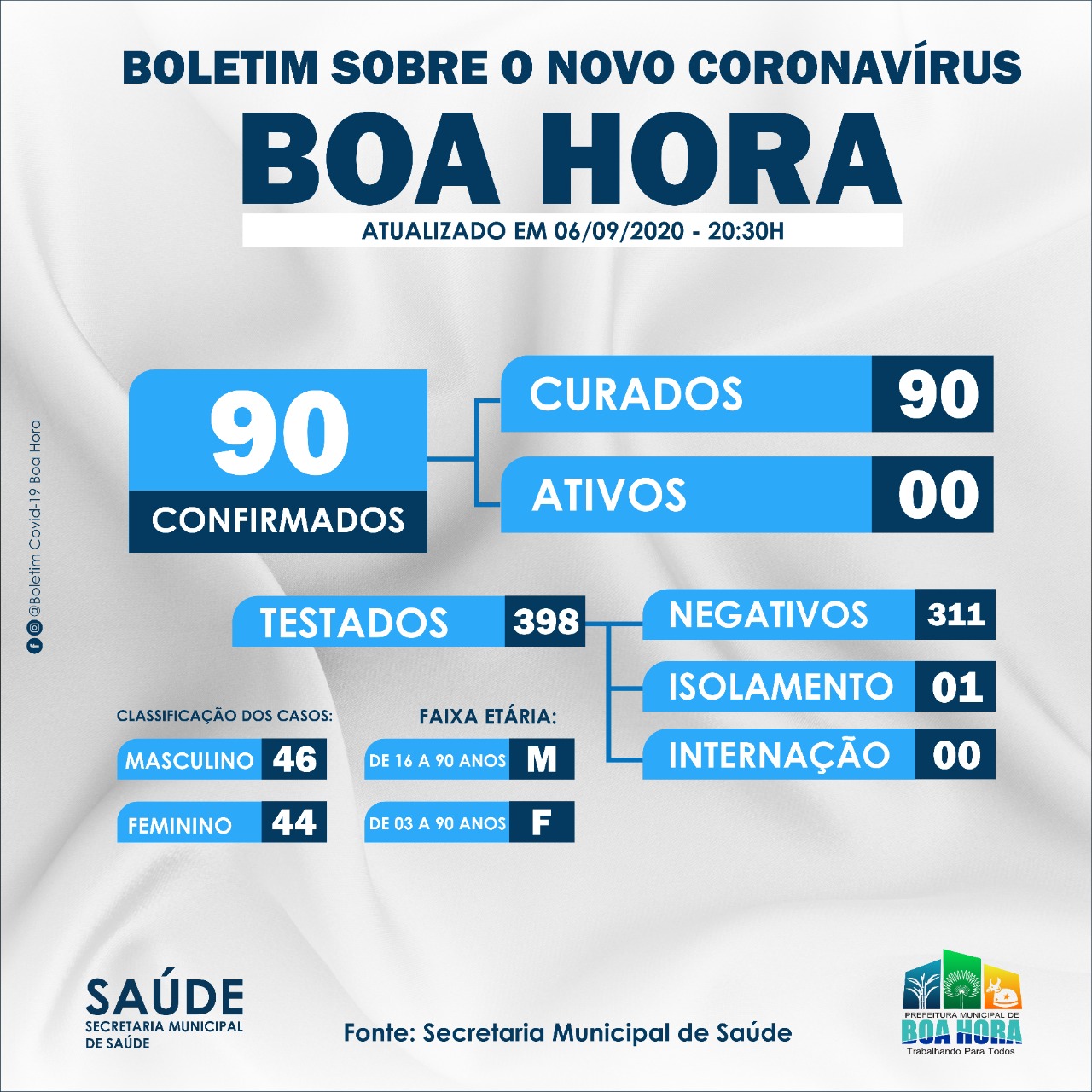 Boa Hora chegou a 90 casos de cura da covid-19 zerando o número de contaminados