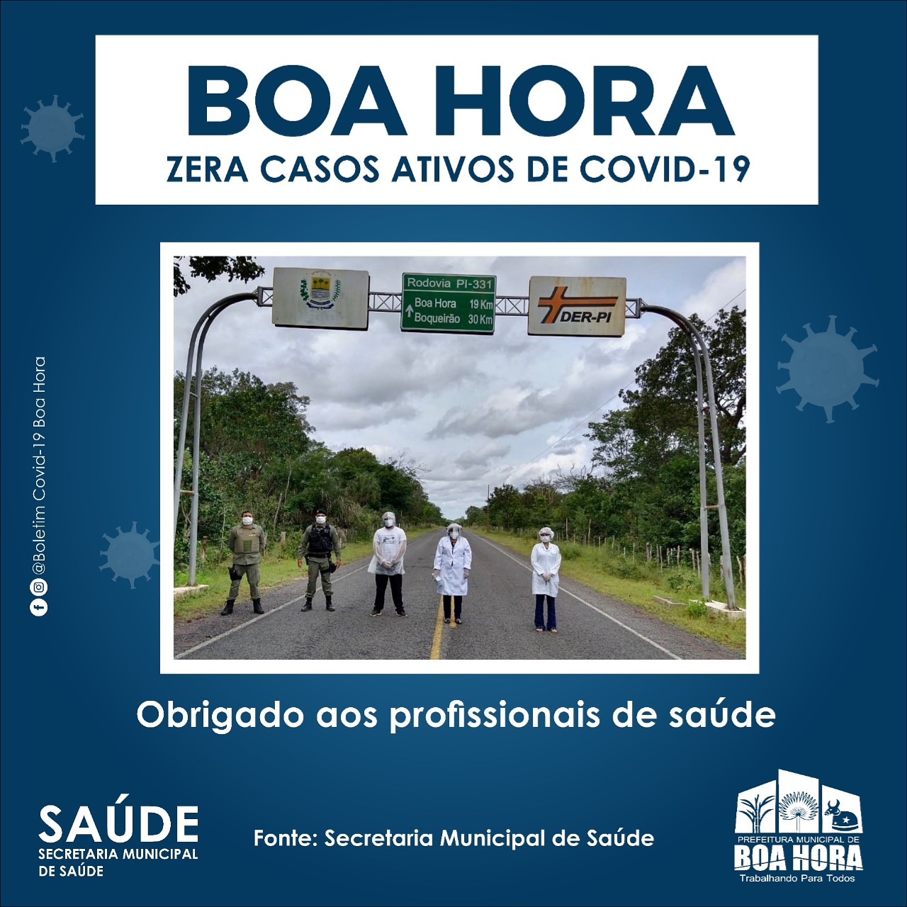 A cidade de Boa Hora se destaca pela eficiência nos trabalhos no combate à pandemia do novo coronavírus. Os profissionais de saúde desempenharam estratégias eficientes no acompanhamento dos pacientes com casos suspeitos e confirmados. Boa Hora é uma das poucas cidades no Piauí sem confirmação de óbitos.