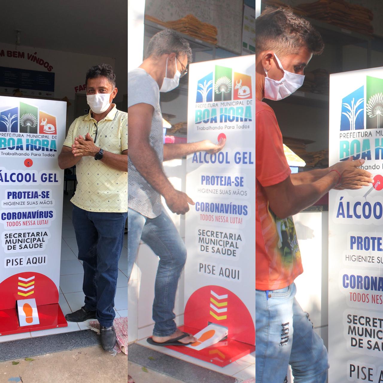 A Prefeitura de Boa Hora através da Secretaria Municipal de Saúde adquiriu totens de álcool em gel para ajudar na higienização das mãos das pessoas que procuram as Unidades Básicas de Saúde do Município. Os equipamentos foram instalados nas Unidades Básicas de Saúde do Centro, do Bairro Mato Seco e na UBS da Localidade Lagoa Seca.