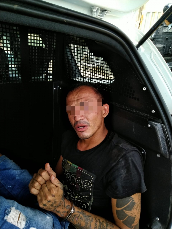 De posse das características físicas do indivíduo a guarnição da Polícia Militar iniciou as diligências e conseguiu localizar o assaltante no conjunto José de Almeida. Ao avistar a viatura o homem correu, pulou muro de duas residências e foi encontrado debaixo de uma cama.