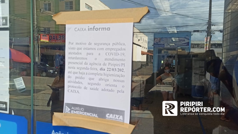 A agência de Piripiri da Caixa Econômica teve o atendimento suspenso nesta segunda-feira (22). Segundo o banco, a medida foi adotada porque funcionários testaram positivo para Covid-19, doença causada pelo novo coronavírus.