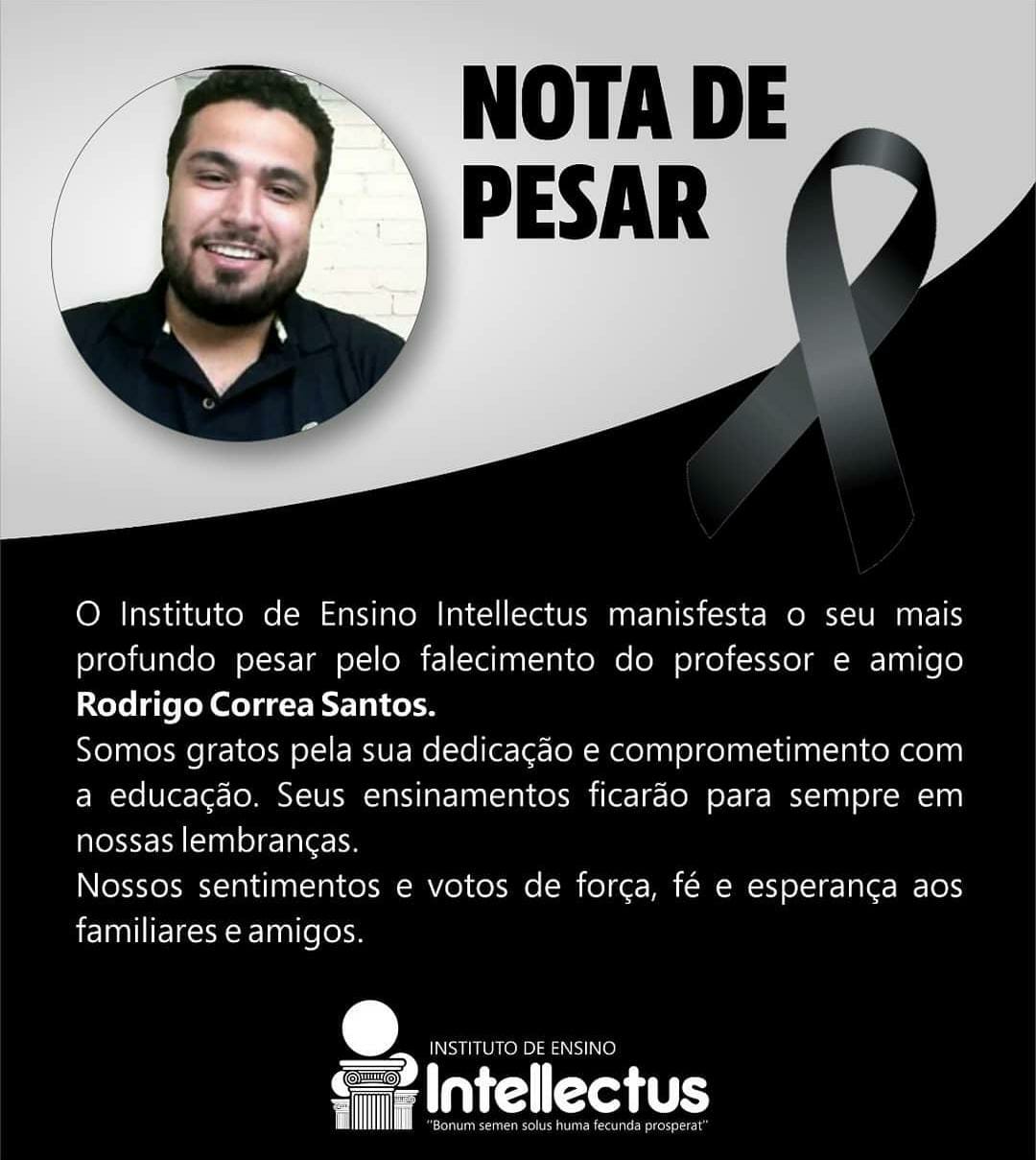 “Sentimos profundamente a dor pela partida tão precoce de um colega que viveu partilhando amizade, carinho e amor com todos quantos lhe honraram a saudável companhia. É triste o e doloroso o momento! Mas busquemos a força no Senhor da Vida para continuar a missão educativo-cristã que o nosso querido Professor Rodrigo tão bem desempenhou”, diz a nota de pesar divulgada pelo colégio.