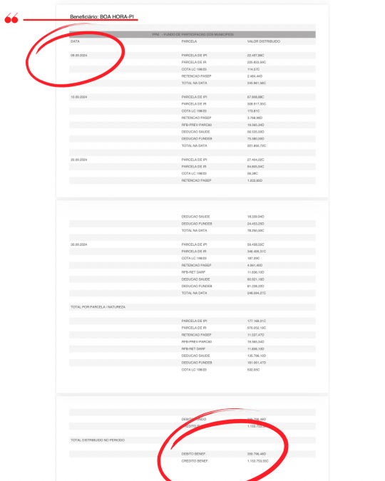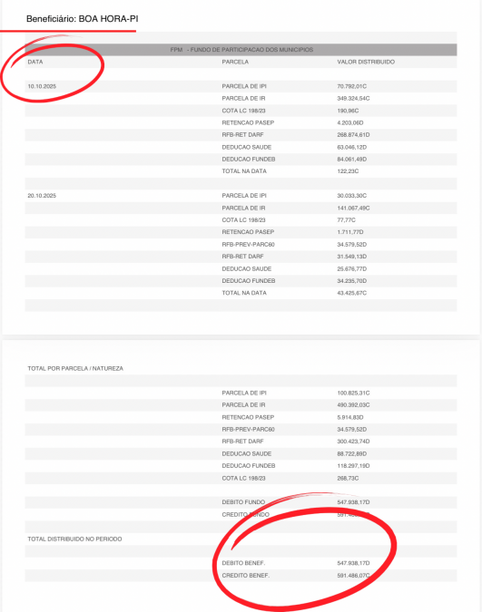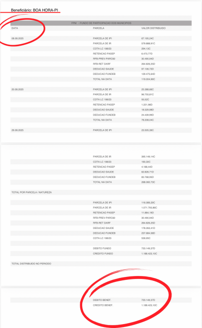 Os dados, no entanto, não confirmam essa versão. Um levantamento feito pelo portal Rapadura News, com base no demonstrativo público do Banco do Brasil, aponta que, no período citado, o município recebeu do governo federal (FPM) R$ 3.288.064,00 — valor superior ao registrado no mesmo período de 2024, quando a gestão do então prefeito Francieudo Canuto recebeu R$ 2.858.463,00.