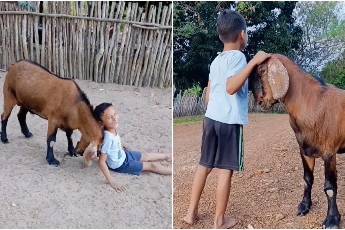 Amizade entre menino de 7 anos e bode de estimação viraliza nas redes sociais: 'sempre amou o animal', diz mãe