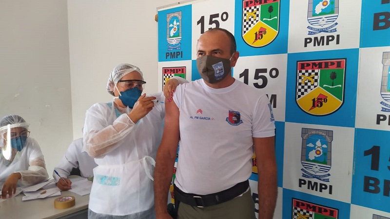 “Hoje em Campo Maior, estamos recebendo as doses para 40 policiais militares, extamente os policias que estão na linha de frente, na fiscalização das medidas sanitárias de combate ao coronavírus. Desde o início da pandemia que a PM em todo o estado do Piauí vem trabalhando juntamente com as equipes da vigilância sanitária nesse monitoramento”, comento o Major comandante do 15º BPM, Etevaldo Alves.