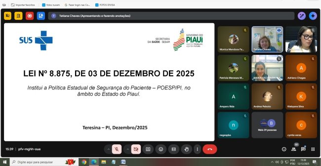 O Piauí avança como referência nacional ao assumir o protagonismo na institucionalização da segurança do paciente como política pública, fortalecendo a gestão do cuidado e contribuindo para a melhoria dos indicadores de saúde em todo o estado.