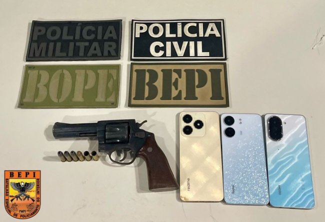 Com o indivíduo, foram apreendidos um revólver, contendo quatro munições intactas e duas deflagradas, além de três aparelhos celulares. Todo o material foi encaminhado à Delegacia Seccional de Esperantina, onde foram adotados os procedimentos legais cabíveis.