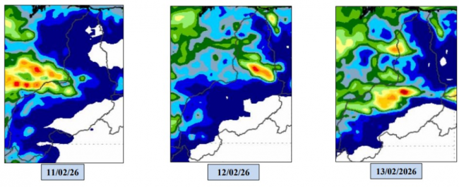 A Semarh aponta que, entre 11 e 17 de fevereiro, a chuva deve continuar distribuída pelo estado, podendo vir acompanhada de ventos mais intensos, especialmente no sudoeste.