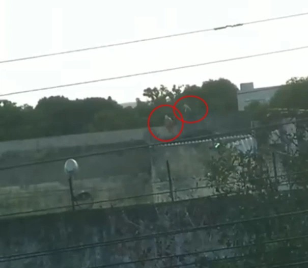 Vídeos que circulam nas redes sociais mostram o momento em que pelo menos dois jovens aparecem em cima do muro.
