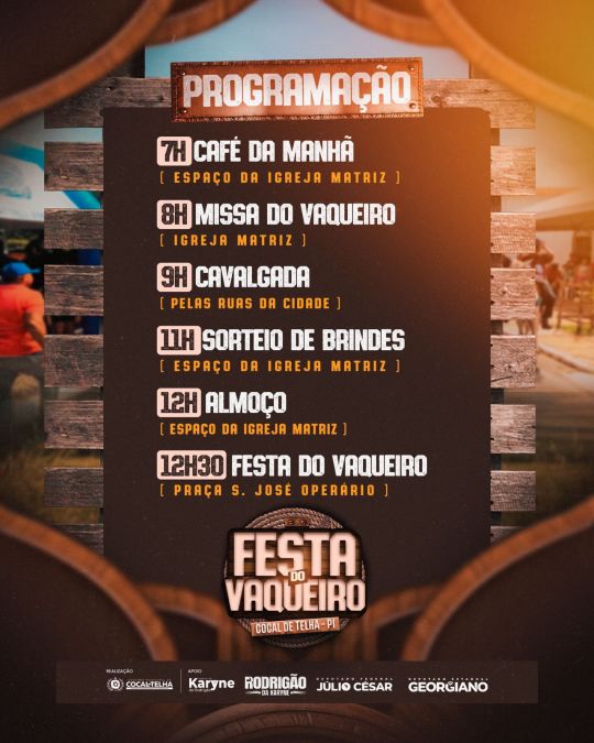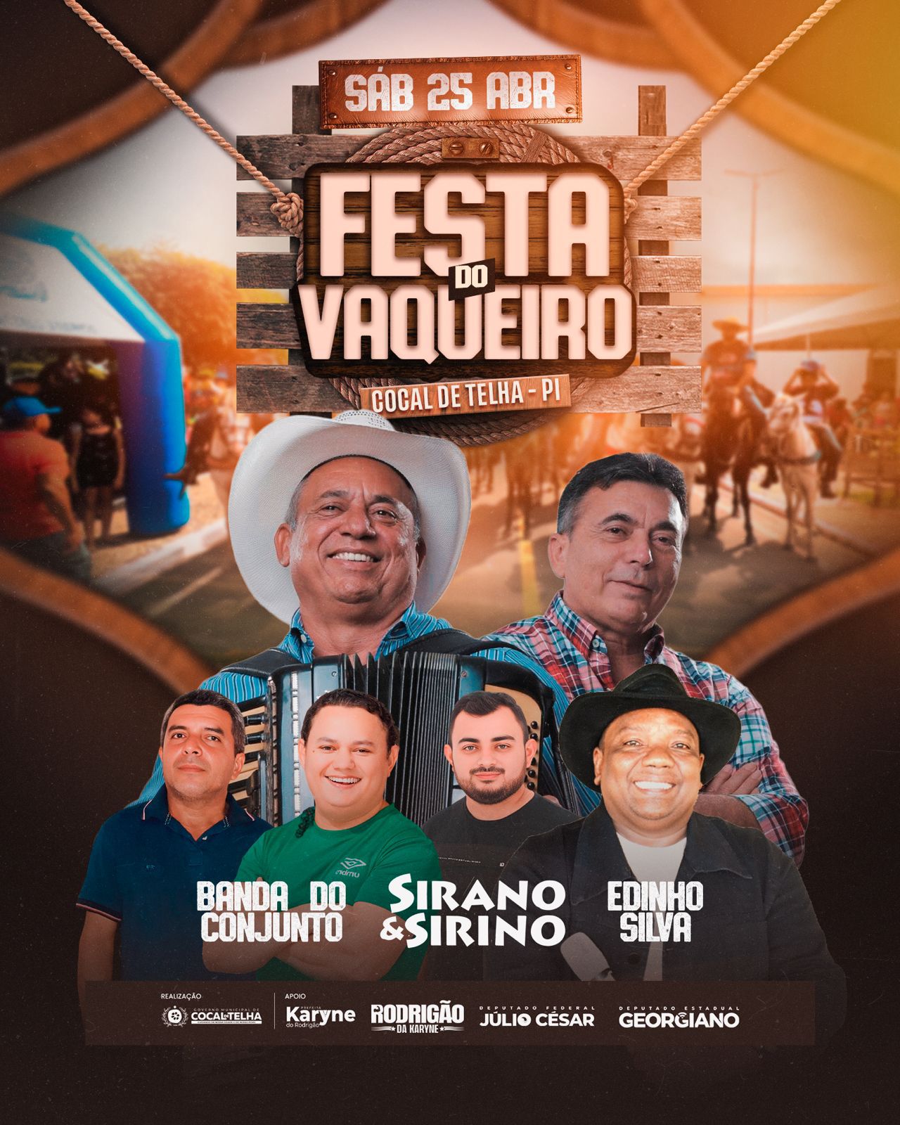 A Prefeitura de Cocal de Telha divulgou a programação oficial da Festa do Vaqueiro, que será realizada no dia 25 de abril, no município de Cocal de Telha.