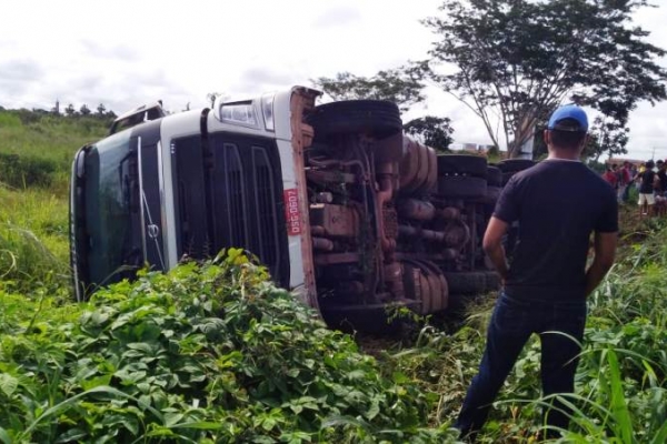 Carreta carregada com cerveja tomba na BR 343 em Campo Maior