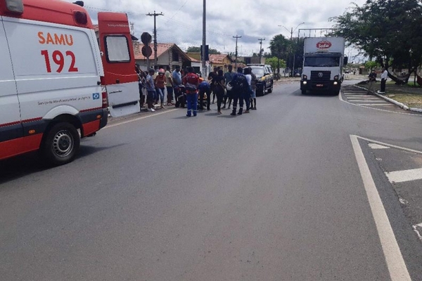 Ônibus colide em moto e mulher sofre lesões graves em Campo Maior