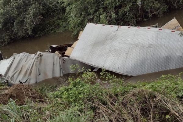 Caminhão cai dentro de riacho após colisão com carro na BR-343 em Campo Maior