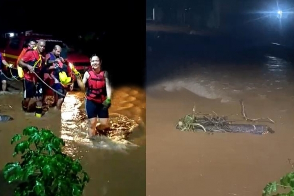 Família é resgatada por bombeiros após riacho transbordar em Capitão de Campos