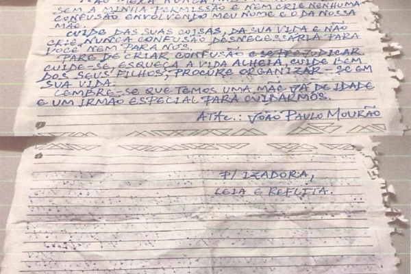 Polícia divulga bilhete com teor de ameaça que irmão enviou a advogada Izadora Mourão