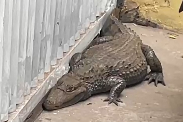 Jacaré é encontrado em calçada de pizzaria e resgate gera tumulto no Piauí