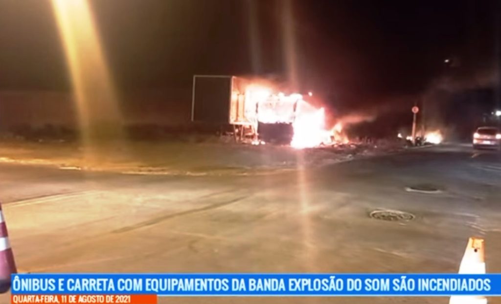 Um incêndio ocorrido na noite testa quarta-feira, 11 de agosto, na cidade de Tianguá-Ceará destruiu dois veículos pertencentes à Banda Explosão do Som.