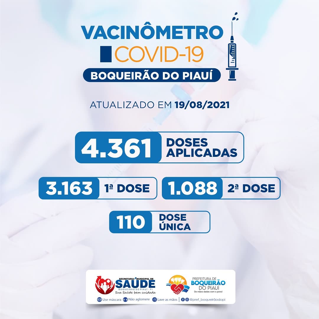 O município de Boqueirão do Piauí atingiu nesta quinta-feira (19), a marca de 50% da população vacinada contra a Covid-19. Os dados são da Secretaria Municipal de Saúde do município.