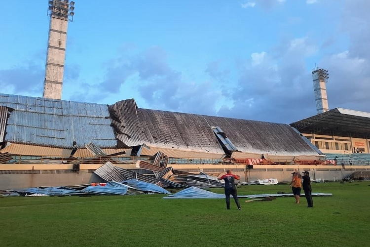 A chuva e o vento provocaram o desabamento de parte da arquibancada do Estádio Frei Epifânio.