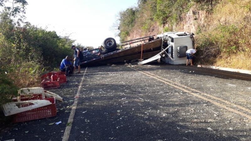 O fato aconteceu entre o cruzamento das comunidades Caiçara, Felicidade e Ema. De acordo com informações do motorista, o caminhão capotou depois que ele perdeu o controle do veículo.
