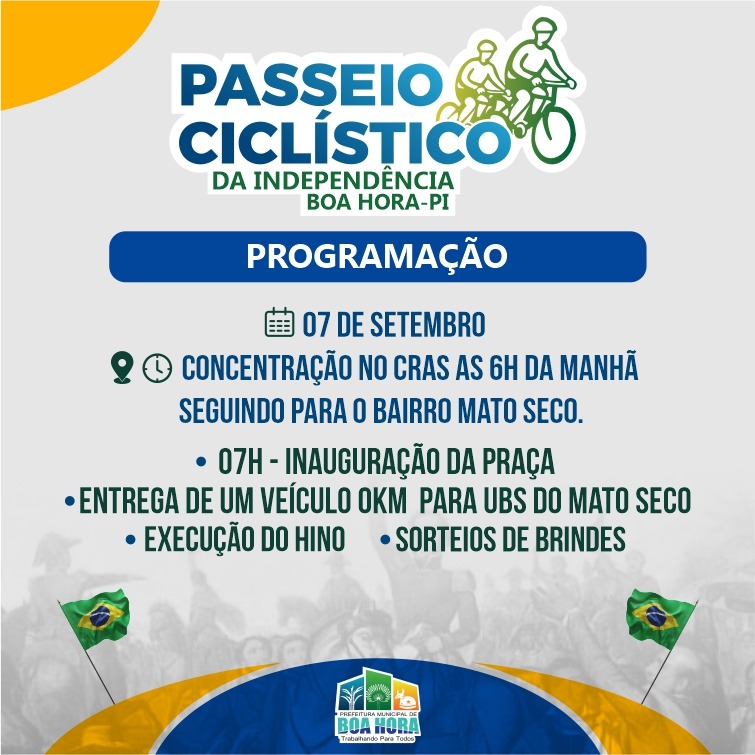 A Prefeitura de Boa Hora divulgou a programação em alusão ao dia da independência do Brasil.